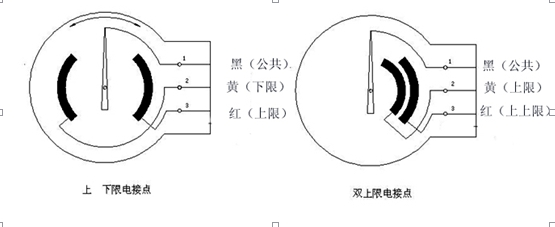 防爆電接點(diǎn)雙金屬溫度計配有電接觸裝置& mdash即機械電接點(diǎn)。當被測介質(zhì)的溫度發(fā)生變化時(shí),自由端的細軸和轉向傳動(dòng)機構帶動(dòng)指針和動(dòng)觸頭轉動(dòng),指示刻度盤(pán)上的溫度變化值。當它與固定觸點(diǎn)(上限觸點(diǎn)和下限觸點(diǎn))接觸或斷開(kāi)時(shí),電路系統中的繼電器和接觸器起作用,以達到自動(dòng)控制和報警的目的。